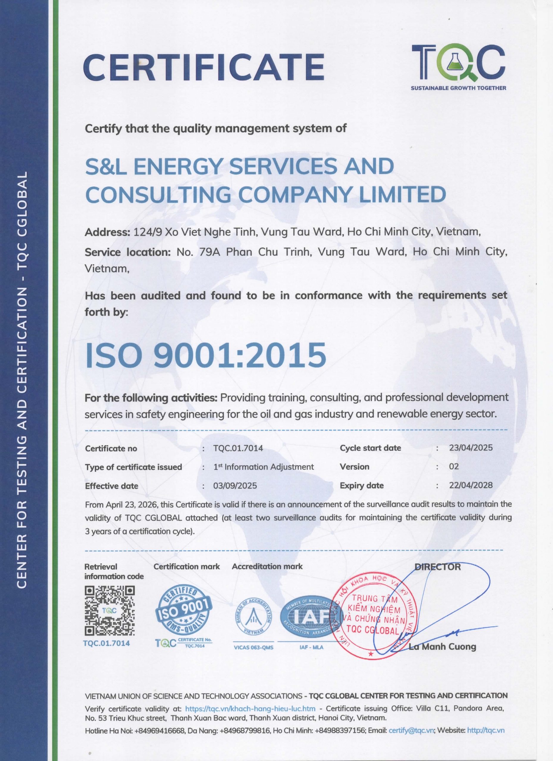 S&L ENERGY CHÍNH THỨC ĐẠT CHỨNG CHỈ MLFT – MECHANICAL LIFTING 🎉 Chúng tôi tự hào thông báo: CÔNG TY TNHH DỊCH VỤ VÀ TƯ VẤN S&L ENERGY vừa chính thức được cấp chứng chỉ MLFT – MECHANICAL LIFTING – minh chứng cho năng lực đào tạo, huấn luyện và kiểm tra chuyên sâu về […]
